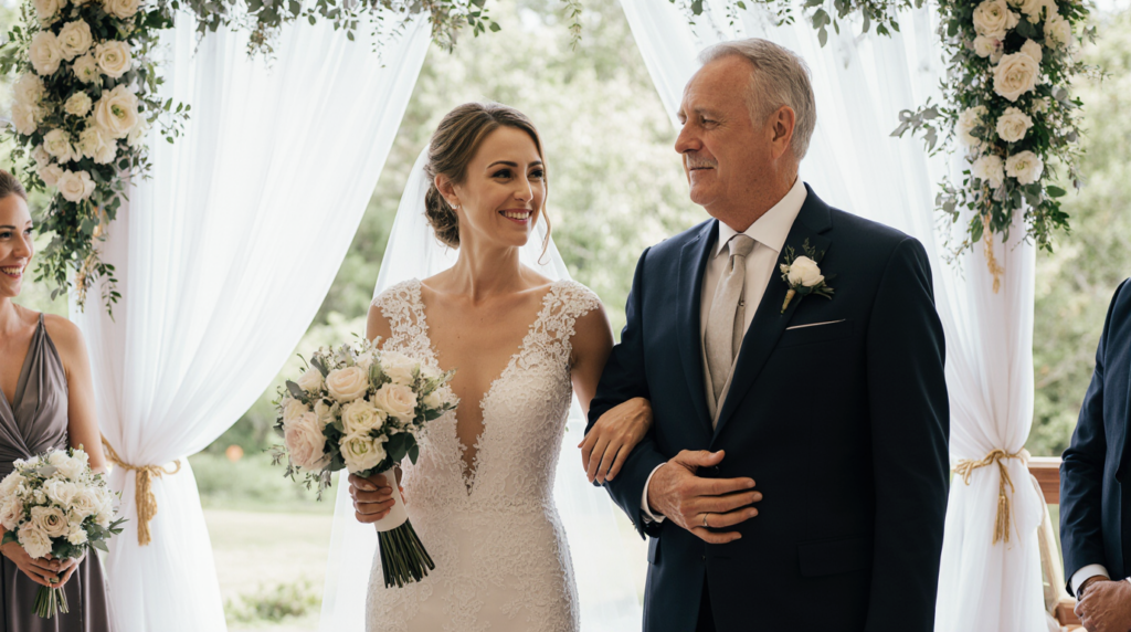 Die Stilrichtung der Hochzeit gibt den Ton an. Ist ein formeller Dresscode vorgegeben, empfiehlt sich ein klassischer Anzug mit Hemd, Krawatte und Lederschuhen. Bei einer lockereren Feier – etwa im Garten oder auf einem Weingut – kann ein hellerer Anzug mit Weste oder Sakko ausreichen. In jedem Fall gilt: Der Vater sollte dem Bräutigam optisch nicht die Schau stehlen, sich aber dennoch klar vom restlichen Publikum abheben.